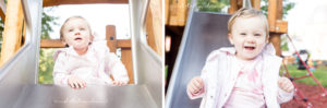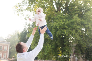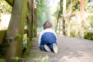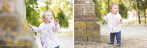 Nous nous sommes donné rendez-vous un matin. Le lieu était magique. Tout en douceur, nous avons démarré. Près du château, quelques photos d’Alexia et de ses parents. Des envolées et des éclats de rire. Petit à petit, nous nous sommes déplacés. A 1 an, elle commence à faire quelques pas avec de l’aide. Tout peut devenir un joli support pour être debout. Attentive à tout ce qui l’entoure, elle est éveillée et curieuse. On s’arrête près d’un petit pont. Quelques pas encore. On a terminé la séance à la plaine de jeux. Balançoire et toboggan sont au programme.