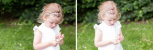 Et enfin, la séance est arrivée. Une longue promenade dans un parc. Des discussions de tout et de rien. Des arrêts à gauche et à droite. Des rires. Et puis l’arrivée de la future grande sœur. Une histoire de tendresse entre elles. Le partage d’un secret. Des moments de jeux, de cache-cache. Des câlins à maman, à doudou. Une complicité. Des bisous. Un moment calme. Quelques fleurs…